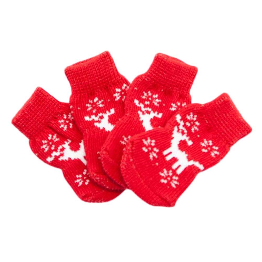 Home > 4 Pcs Christmas Red Elk Dog Knitted Pet Socks Cartoon Cute Puppy Cat Socks Dog Foot Covers Poodle Teddy Socks