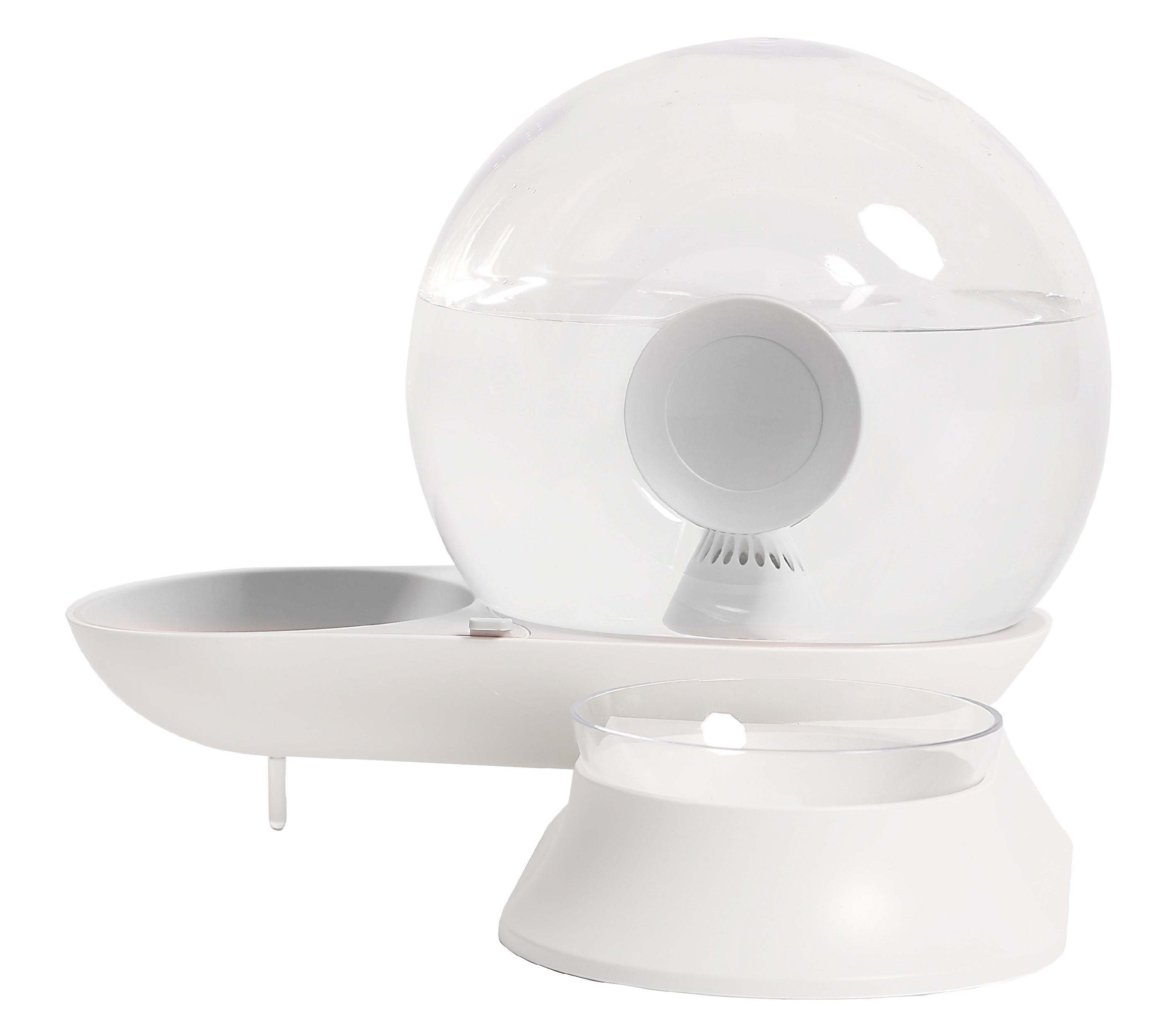 1.Features a 2-in-1 Filtered Water Dispenser and Food Bowl