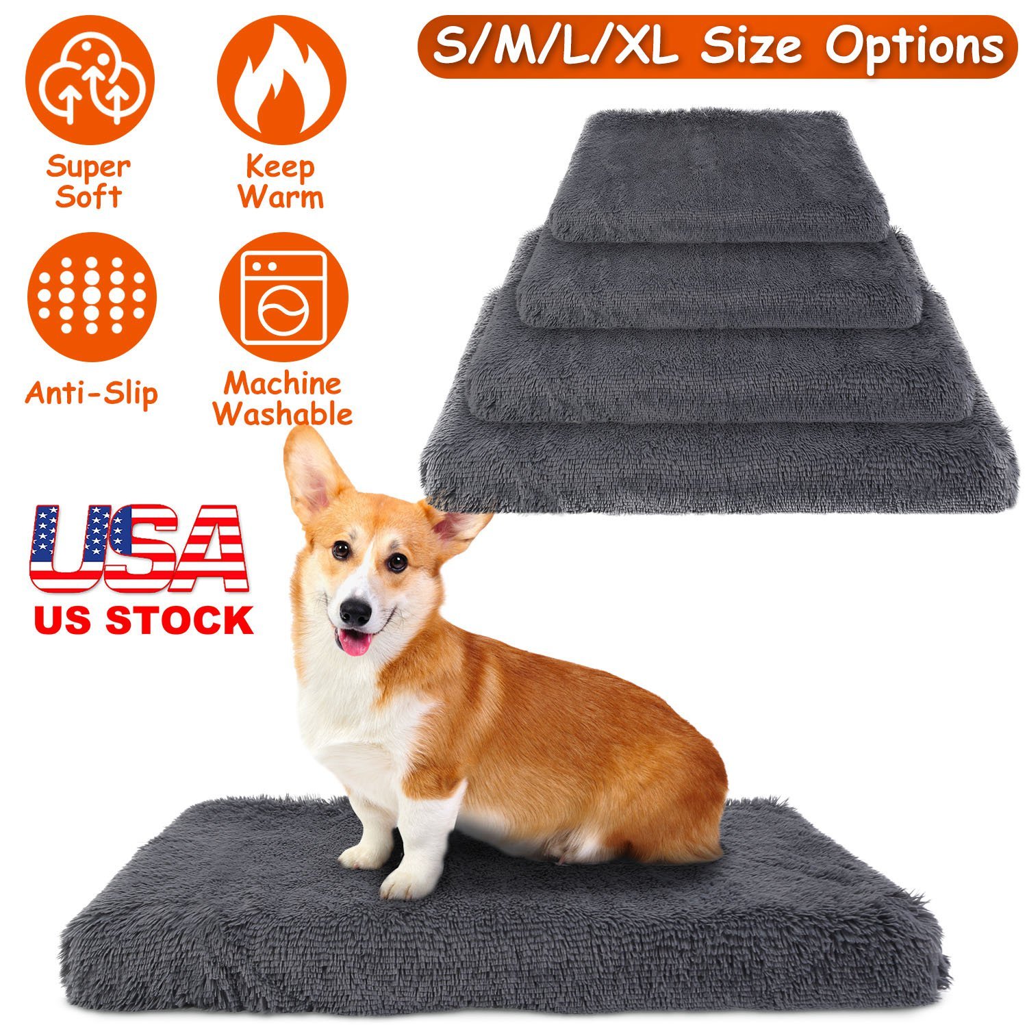 Dog Bed Soft Plush Cushion Cozy Warm Pet Crate Mat Dog Carpet Mattress with Long Plush for S/M Dogs