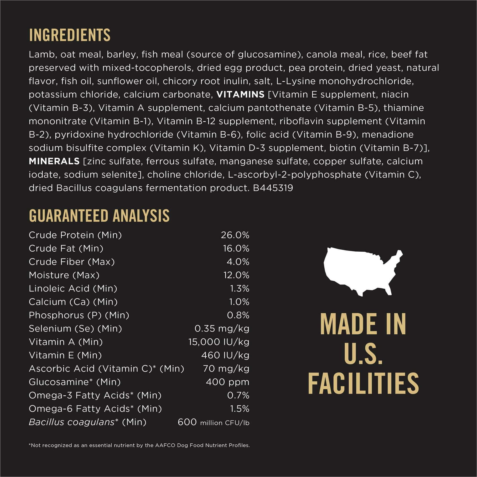 High protein formula, with real lamb as the first ingredient